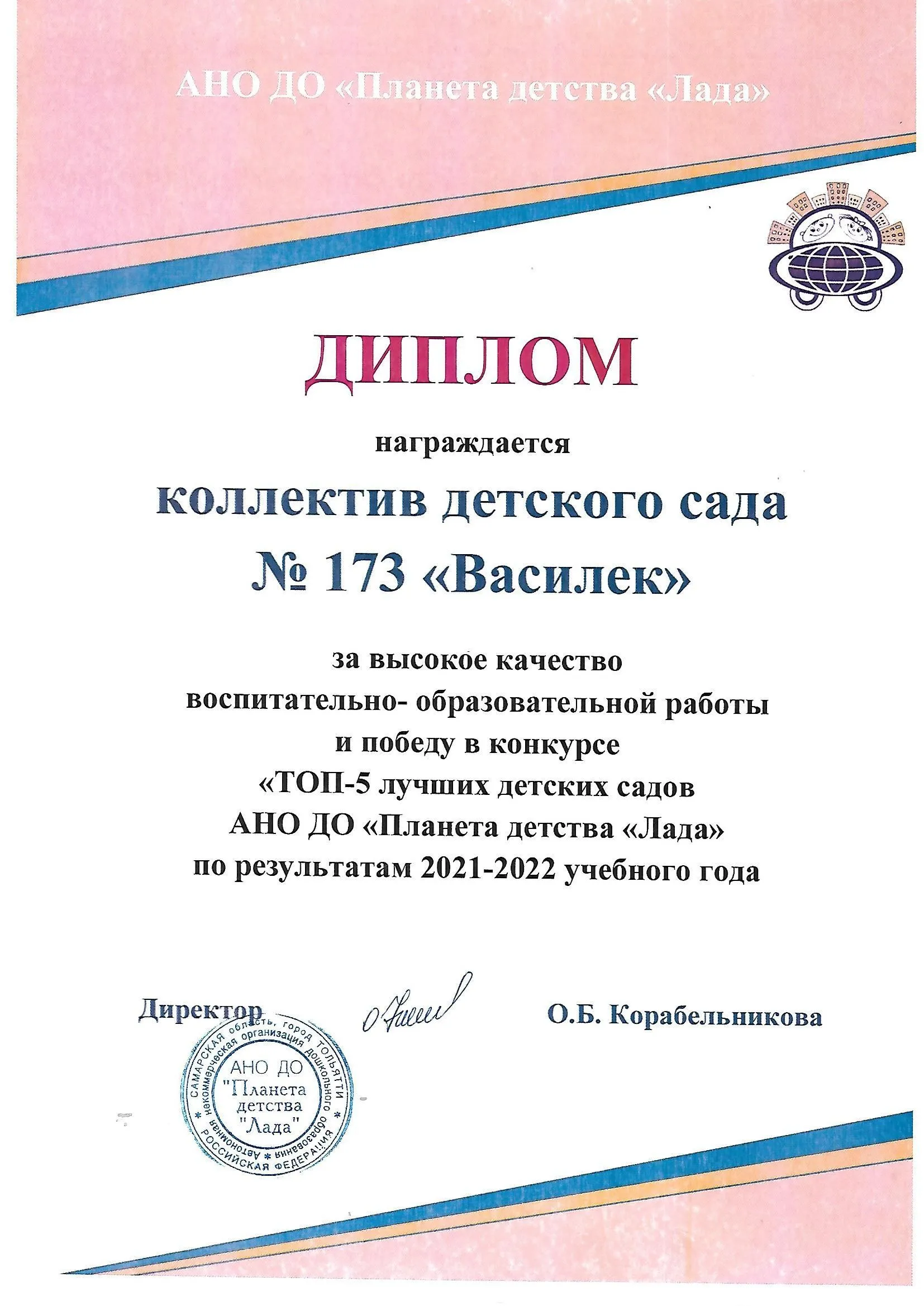 Детский сад № 173 "Василёк" является структурным подразделением АНО ДО "Планета детства "Лада".