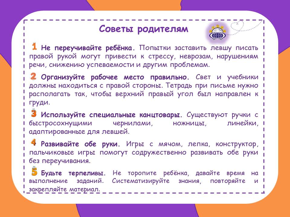 «Почему он пишет зеркально?», «Будет ли он успевать в школе?», «Надо ли переучивать?» - разложим всё по полочкам вместе с Ириной Валентиновной Корягиной, педагогом-психологом АНО ДО Планета детства Лада ДС №157 «Светлячок» : развенчаем мифы, объясняем особенности развития и дадим работающие советы, которые облегчат жизнь и ребёнку, и вам. Листайте фото.
