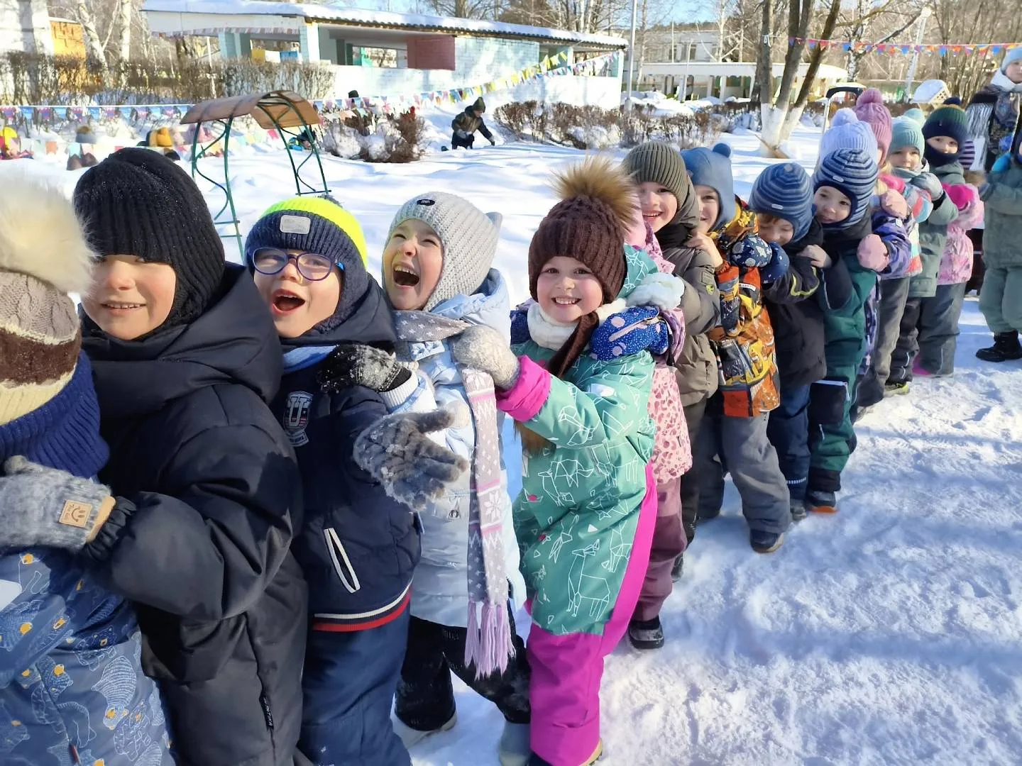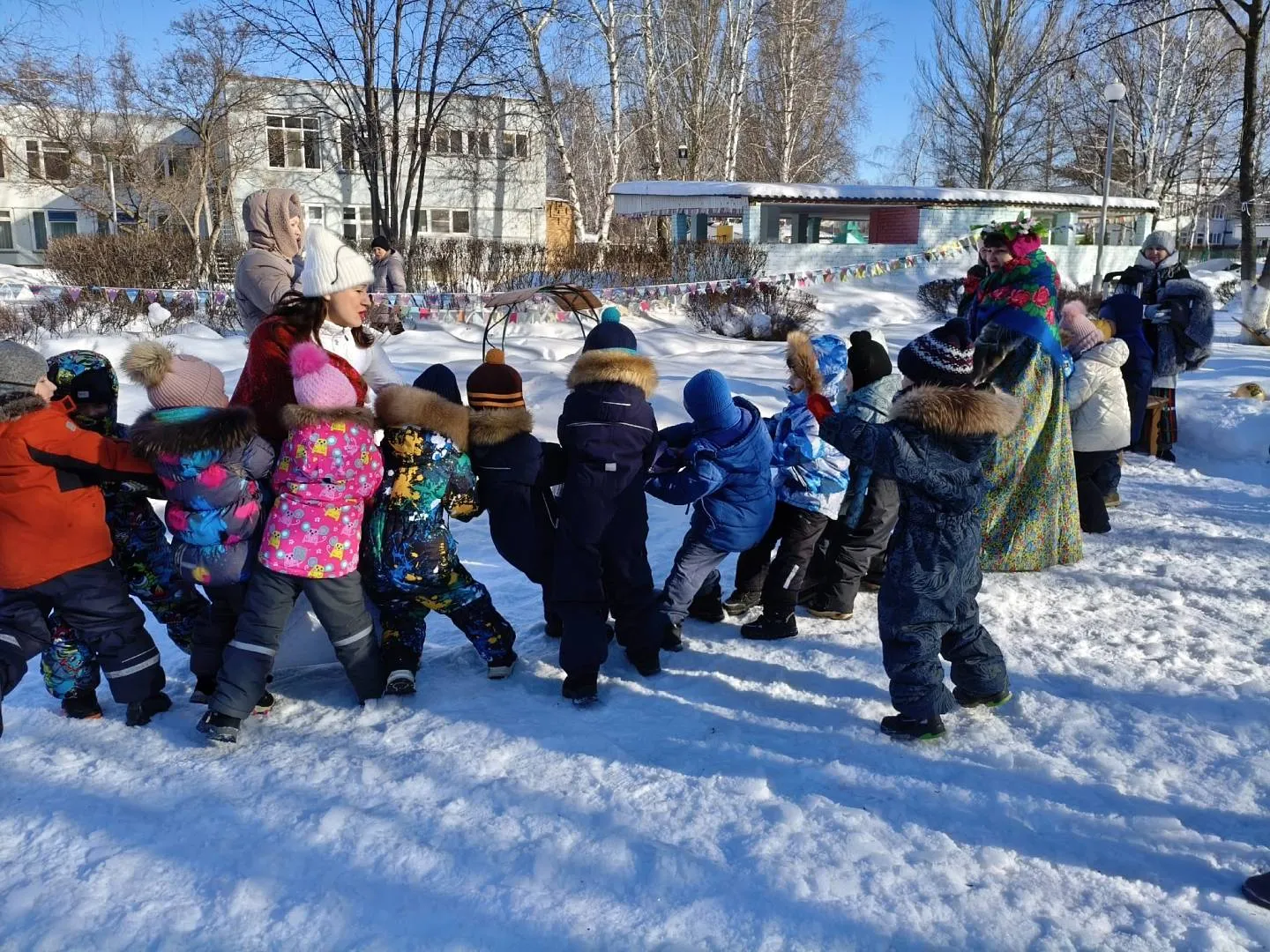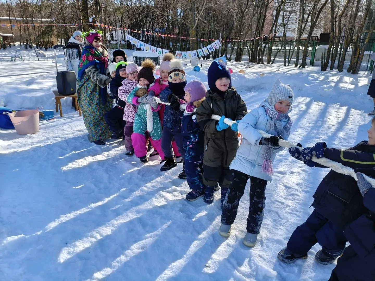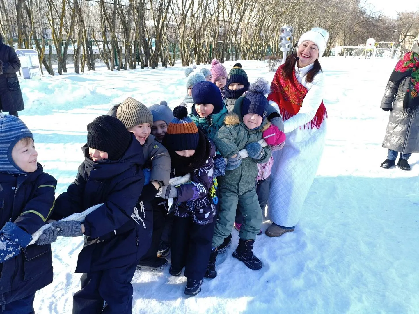 - Игры на морозце — малыши соревновались в перетягивании каната! Самые ловкие получили звание «богатырей» и аплодисменты от друзей.