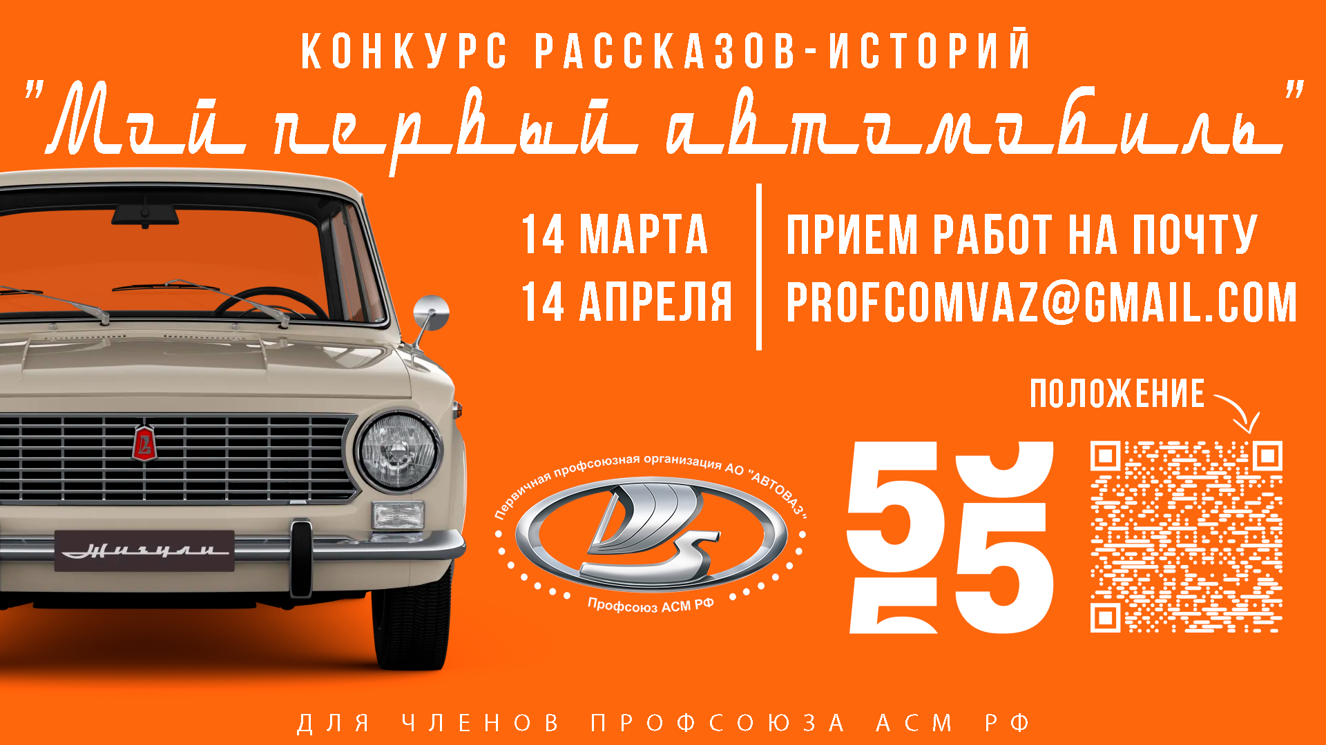 Внимание! Работы на конкурс рассказов-историй «Мой первый автомобиль» принимаются до 14 апреля 2025 года от членов профсоюза АСМ, – авторы рассказов-историй От одного автора – один рассказ желательно с фотографией первого автомобиля, о котором говорится в нем. Работы принимаются на конкурс по электронной почте: profcomvaz@gmail.com с темой письма «Мой первый авто» с 14 марта по 14 апреля 2025 года.