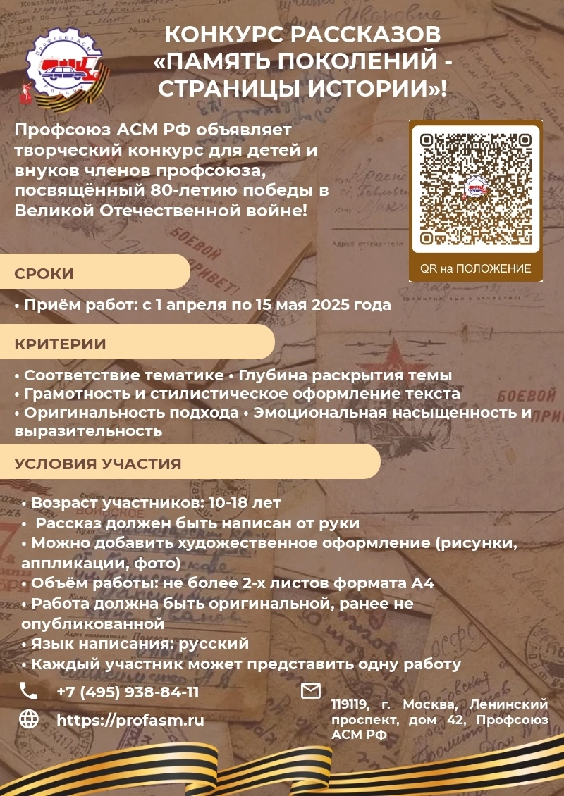 ПРОФСОЮЗ АСМ РФ КОНКУРС РАССКАЗОВ "ПАМЯТЬ ПОКОЛЕНИЙ-СТРАНИЦЫ ИСТОРИИ!"