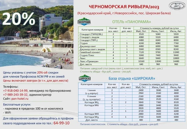- СКОЛЬКО: для членов профсоюза и их семей скидка на путевки – 15 %.
