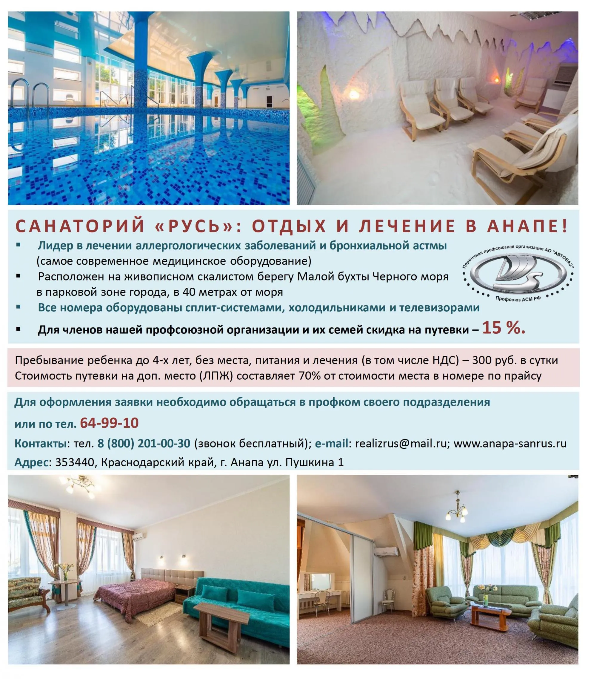 - СКОЛЬКО: скидка 10% членам профсоюза АСМ и членам его семьи на проживание в комфортабельных номерах и оздоровление.