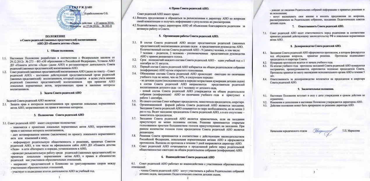 Заседание Совета родителей № 1 «Перспективы развития организации на 2023-2024 учебный год с учетом новых нормативных документов в системе дошкольного образования» Заседание Совета родителей № 2 «Психолого-педагогическое сопровождение детей с ограниченными возможностями здоровья в детских садах АНО» Заседание Совета родителей № 3 «Программа развития АНО на 2024-2026гг. Перспективы развития социального партнерства АНО» Заседание Совета родителей № 4 «Итоги деятельности организации за 2023-2024 уч.г» |